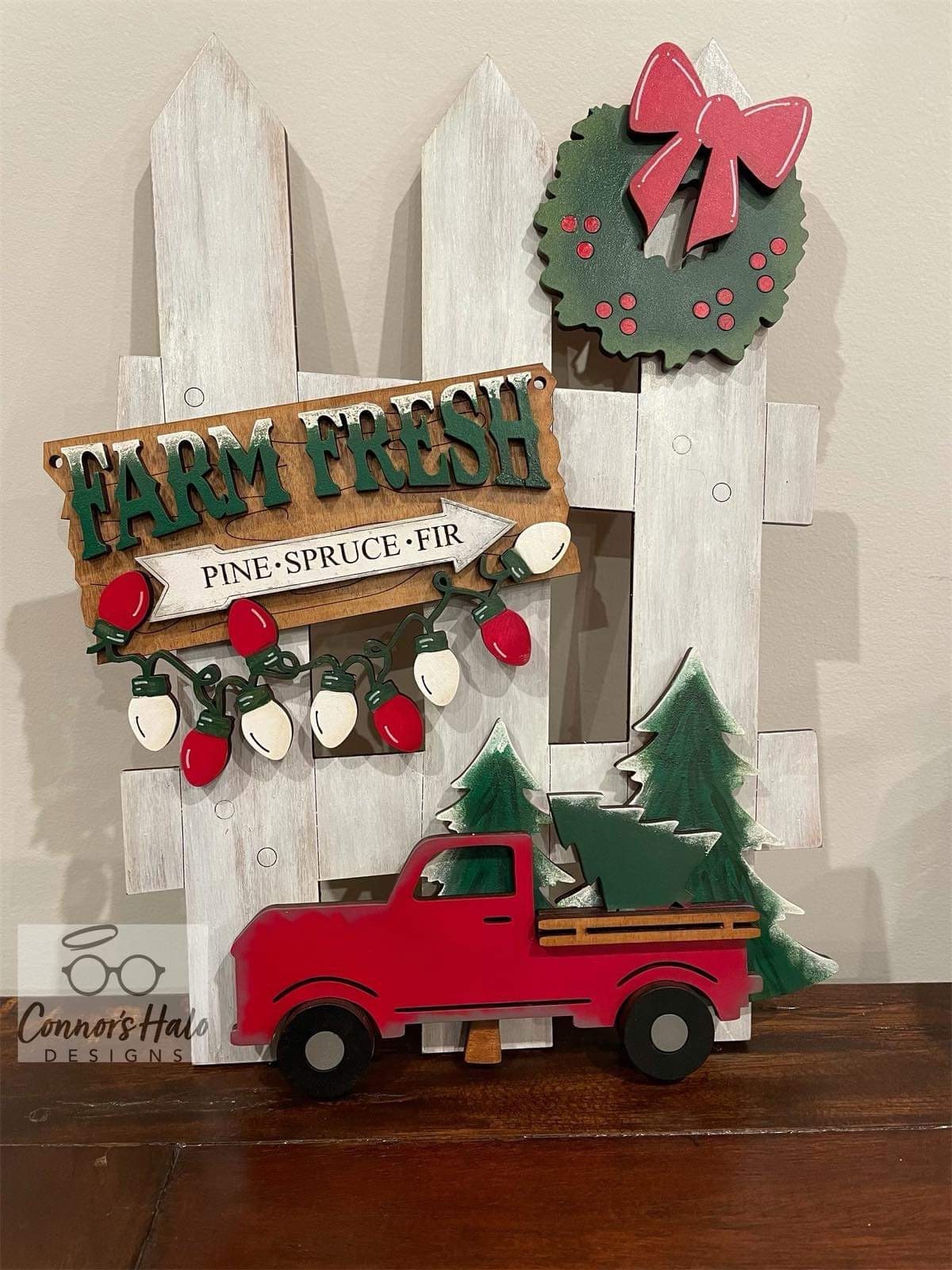 This file includes the two versions of the fence(standing and hanging), Gnome, Santa and Tree farm. The fence is 13 tall. You may use 1/8 or 1/4' material. Each interchangeable set takes about 1/2 glow forge sized sheet of material.