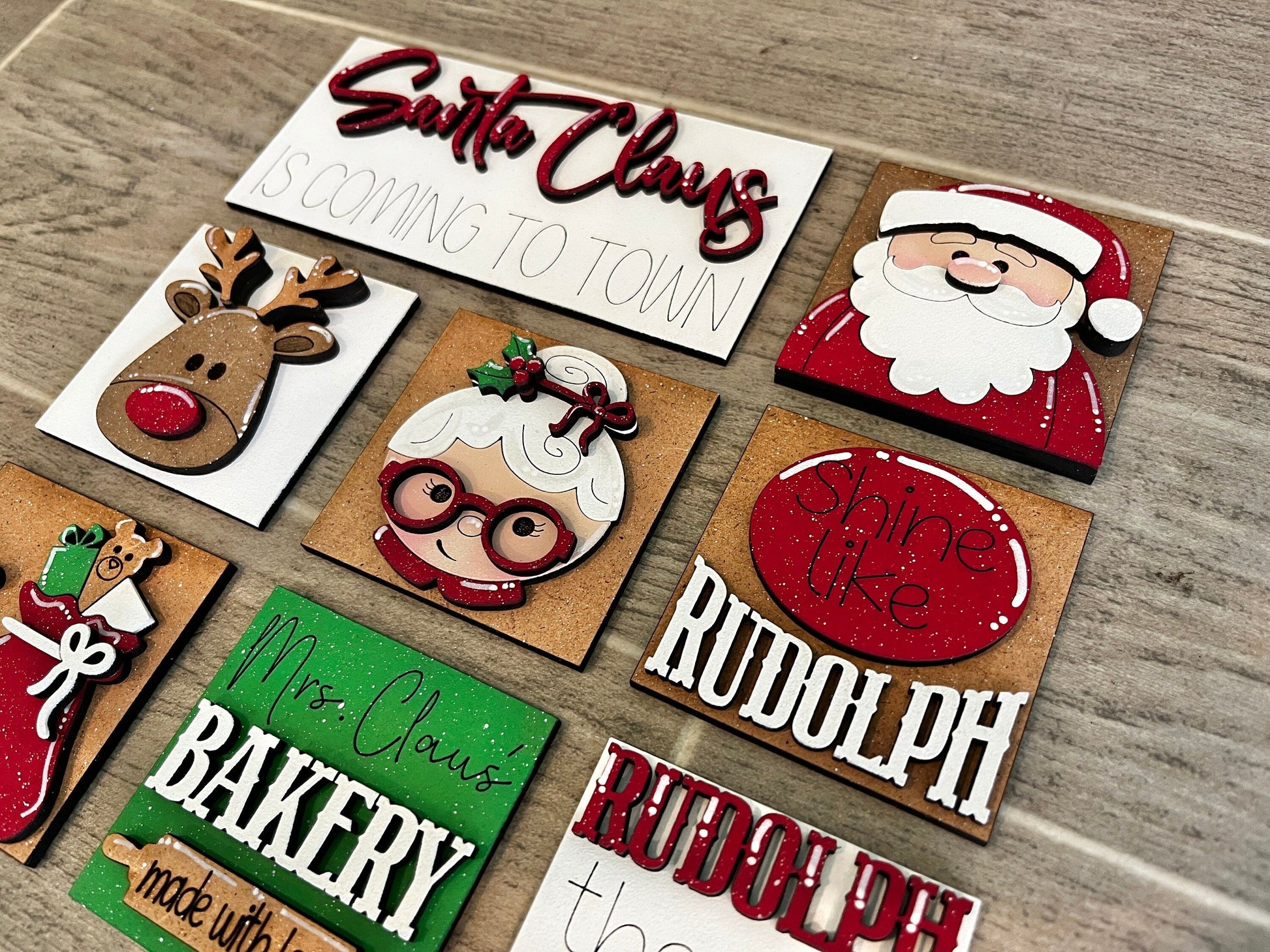 MINI Santa Christmas Interchangeable Leaning Sign File SVG, Rudolph, Mrs. Claus Tiered Tray Glowforge, LuckyHeartDesignsCo